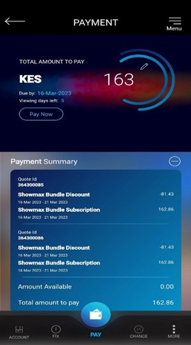 Customers can log onto self-service platforms (DStv/GOtv Website, DStv/GOtv App, USSD, WhatsApp and Telegram platform) to check balance due for subscription. If balance due is not sufficient for subscription renewal, upgrade, XtraView, downgrade or add-on products, the customer must top up the remaining balance using self-service platform by clicking on the pay icon and following the payment instructions.