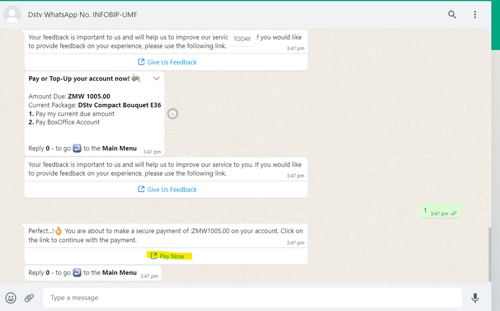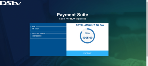 - You will be redirected to the DStv website where you will be prompted to proceed with payment by clicking Pay Now