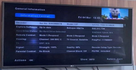 - If the decoder software is not up to date, the customer will be prompted to update the software